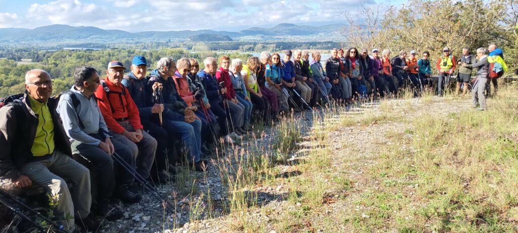 Le but de cette balade annuelle dans les environs d’Aix-les-Bains est d’être un marcheur solidaire en faisant un don au profit d’ASS’HUM, association à vocation humanitaire gérée par des bénévoles, qui engage des actions de développement et de solidarité pour les Haïtiens. Elle est organisée depuis l’origine par Gilbert, notre « chef de cœur », mais étant absent cette année car en convalescence, il avait confié à Claudette, Colette, Françoise et d’autres le bon déroulement de cette journée. Accompagnés du soleil, nous avons marché le long du Rhône, de Vions à Chanaz, en passant tout d’abord par la Commanderie et l’étang bleu.