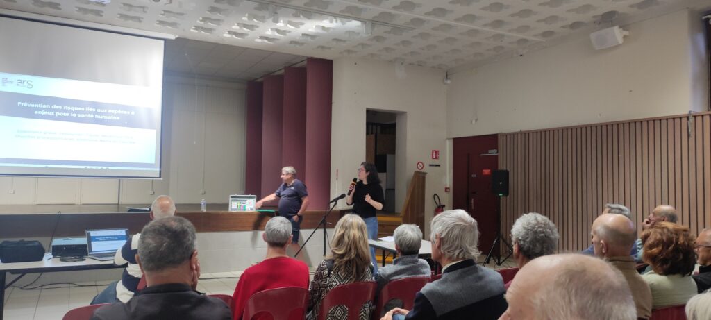 Dans un premier temps, Madame Julie Rossa, chargée de projet environnement et développement durable au CPIE Chablais-Léman a animé une « conférence débat exposition » sur les risques liés à deux espèces à enjeux pour la santé : les tiques et l’ambroisie. Nul doute que ses informations très claires, ses mises au point pour sortir des idées reçues et ses conseils pratiques nous aideront à prévoir sereinement nos prochaines sorties en nature en préservant notre santé. Nous l’en remercions vivement !